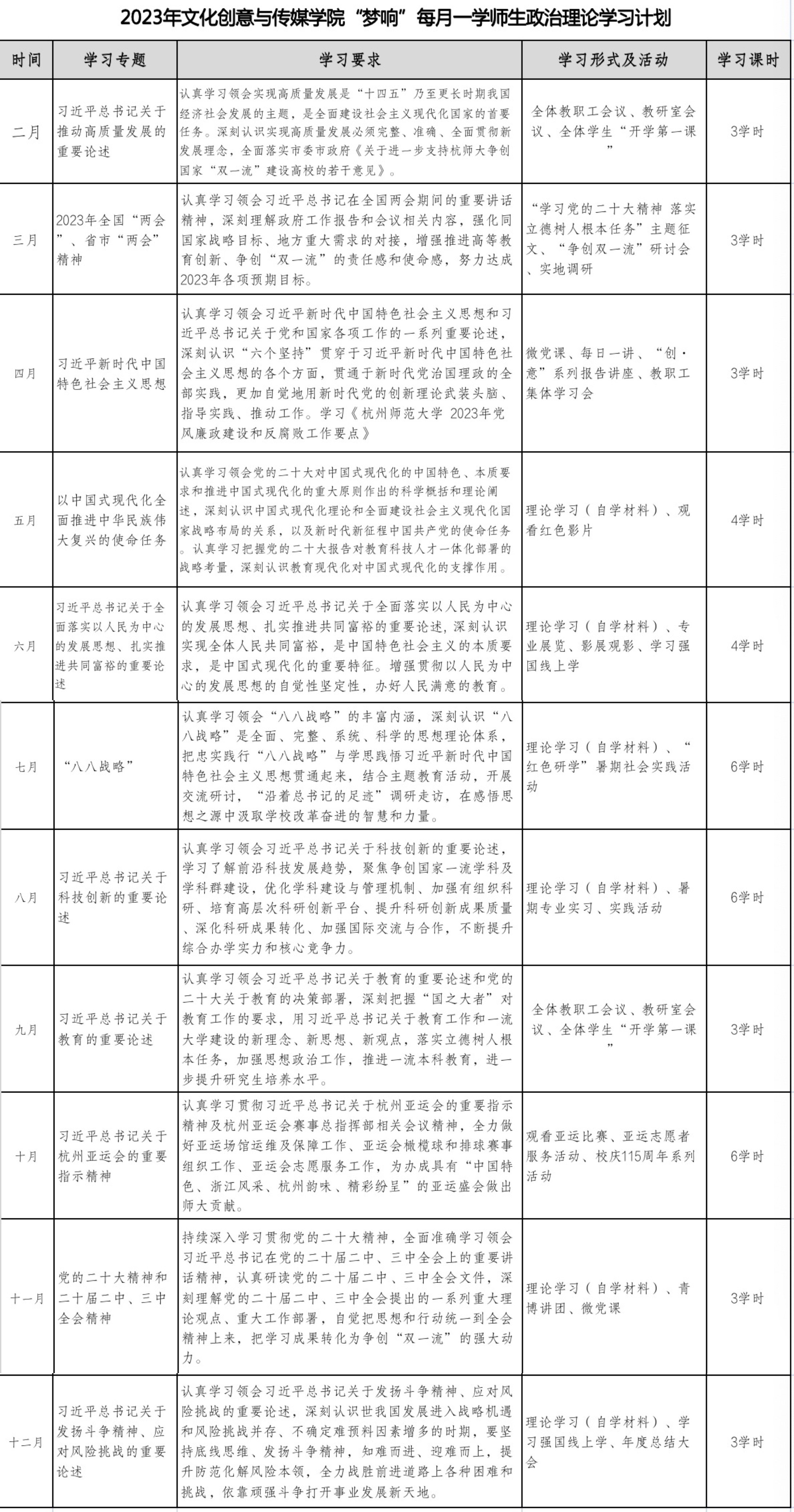 2023年开车漫画 “梦响”每月一学师生政治理论学习计划