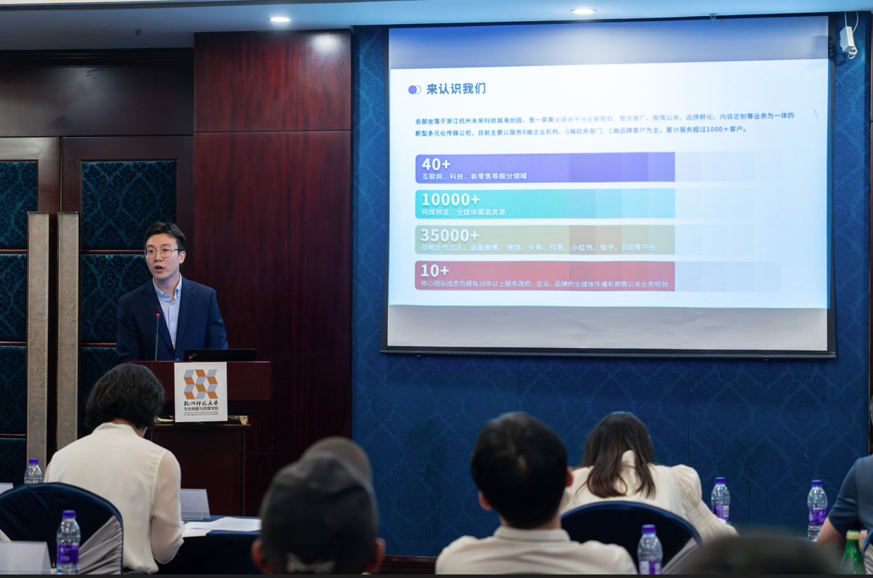 在数字文化产业发展前沿论坛中,浙江省电视艺术家协会秘书长汤学君、杭州人民广播电台新闻综合频率总监金波、浙江中南卡通股份有限公司总经理沈玉良、候马传媒有限公司政府事务部总监柏鑫禾以及杭师大文传学院的夏烈教授带来数字文化产业发展的分享。此外,参会人员以“数字文化产业发展前瞻”和“数字文化产业人才培训的新路径”为话题,展开行业对谈,切实响应国家号召,促进校企业深度融合,让数字文化产业新业态蓬勃发展。至此,本次会议圆满结束。