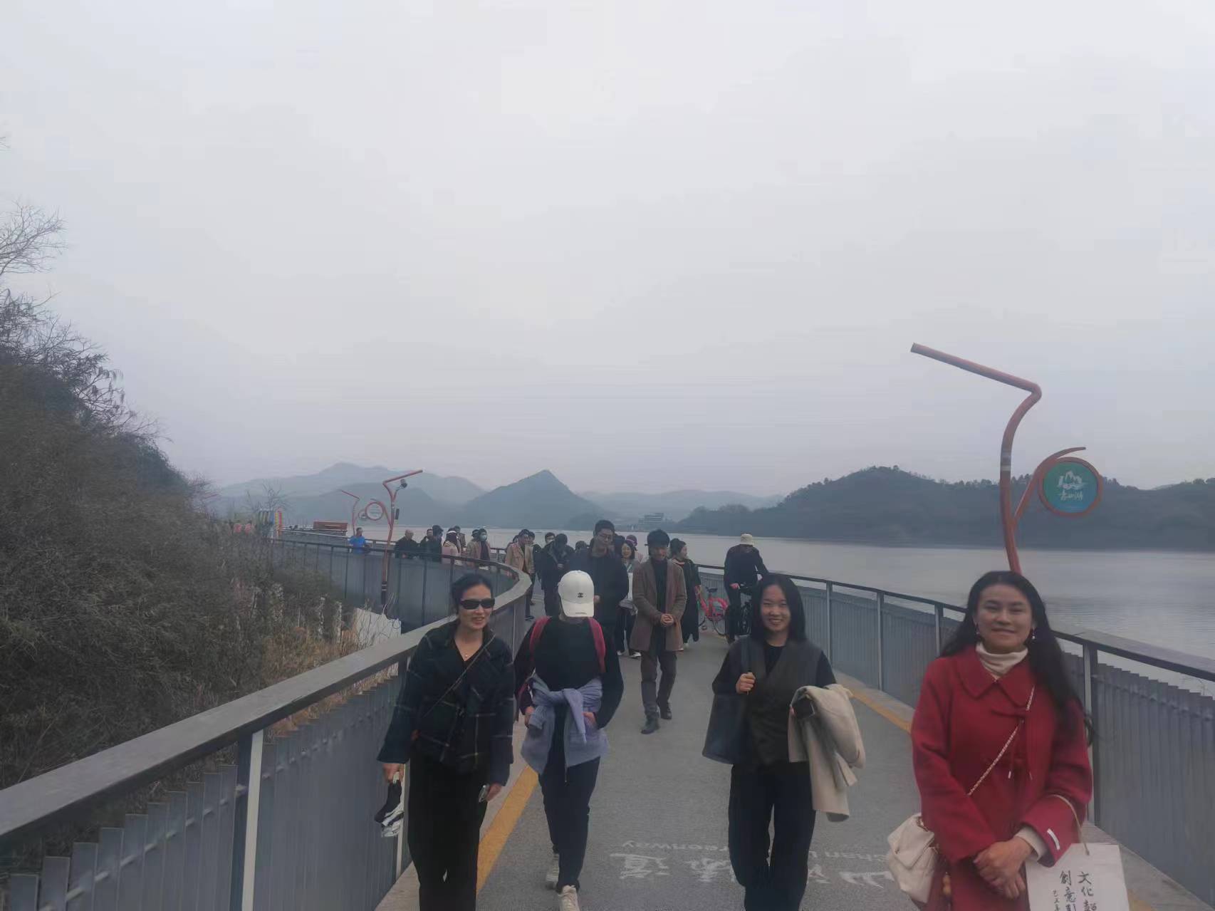 2024年3月13日文传学院开展去青山湖春游探宝活动,青山湖位于浙江省杭州市临安区青山湖街道,被誉为临安第一景。临安新十景之一的青山湖国家森林公园,青山湖为大型人造湖,建成于1964年,四面环山。湖区生活着240多种野生动物,有白颈长尾雉,白鹳、黑鹳,野鸭等。湖之北有100万平方米国内罕见的水上森林,像一块翡翠镶嵌在碧水之中。学院教工沐浴着初春的暖阳漫步青山湖的水杉大道中,大家饶有兴致地探寻着春的痕迹,感受着春日山水的生机盎然,同时也借此机会放松心情,在轻松愉快的淘宝旅途中交流互动。