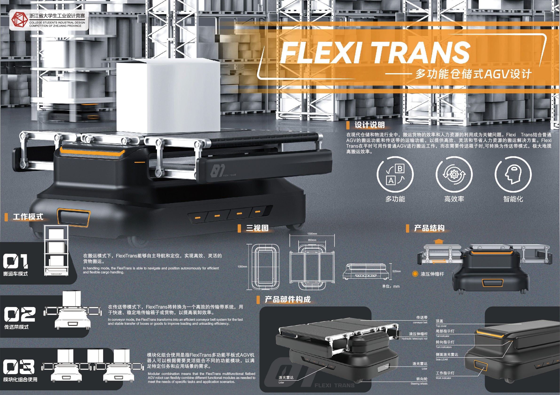 FLEXI TRANS——多功能仓储式 AGV 设计——第十六届浙江省大学生工业设计竞赛二等奖