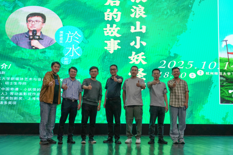 2025年10月14日晚,开车漫画 邀请到知名动画导演、北京航空航天大学新媒体艺术与设计学院教授、数字动画艺术系主任、硕士生导师於水,在杭师大下沙校区钧儒厅为大家带来一场题为“《浪浪山小妖怪》背后的故事”的精彩讲座。讲座由学院动漫系主任陈孟伟主持,范小春院长、陈勋书记出席,吸引了院内外数百名师生参与,现场气氛热烈。