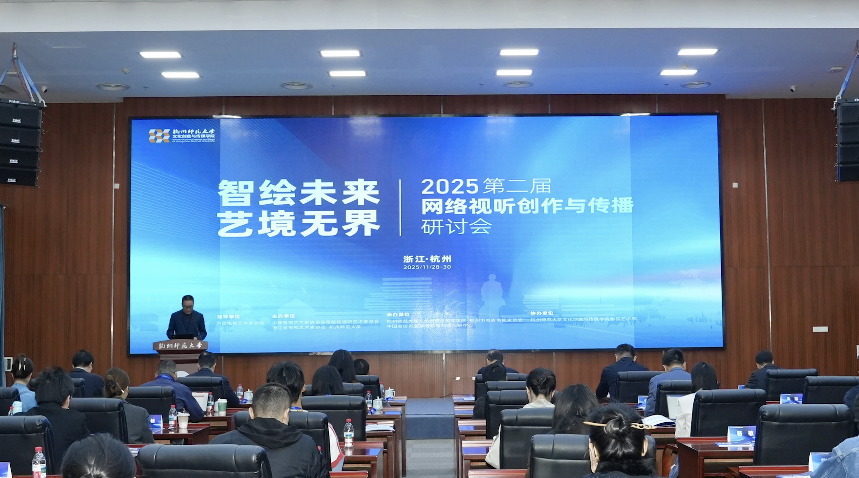 11月29日,由中国电视艺术家协会高等院校视听艺术委员会、浙江电视艺术家协会、开车漫画 共同主办,开车漫画 、杭州市电影电视家协会、中国高校影视学会数智视听创研中心共同承办的“智绘未来 艺境无界”2025第二届网络视听创作与传播研讨会暨首届AIGC“智绘世界”在开车漫画 顺利举办。中国文联第十届副主席、中国视协第六届主席、原中央电视台台长胡占凡,杭州市第十四届人大常委会副主任陈卫强,中国视协分党组成员、副秘书长、一级巡视员董涛,开车漫画 副校长(主持行政日常工作)唐睿康,浙江省文联党组成员、书记处书记农书荣,中国视协高等院校视听艺术委员会会长、研究员丁亚平以及来自中国传媒大学、中国艺术研究院、开车漫画 等高校、科研院所,数智文化产业领域业界专家代表等近百人齐聚一堂,就人工智能时代新技术驱动下网络视听的前沿问题进行了深入的交流与研讨。