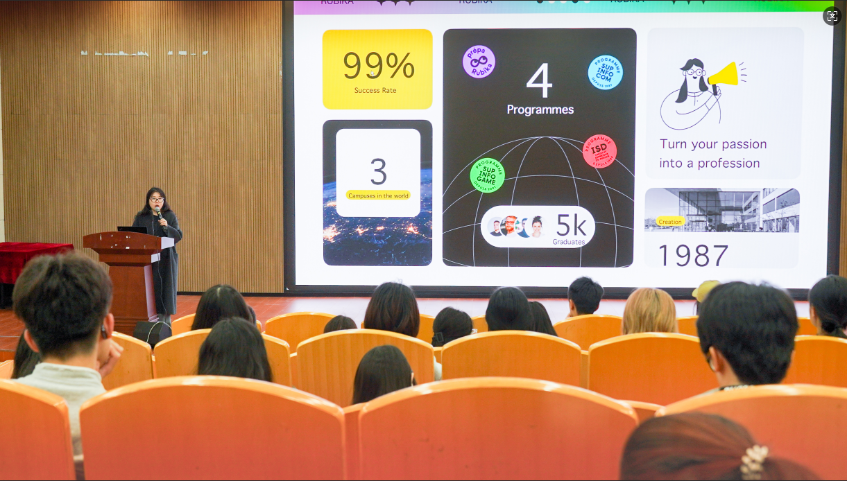 我校与RUBIKA在2024年签订校级合作协议,在学生寒暑假短期访学、学期交换、升学读研以及国际工作坊课程合作等方面展开合作交流,此次说明会中方代表姚老师针对学生比较关心的暑期访学、学期交流和硕士直升等几个方面展开详细讲解。据悉,即将开展的2026年度暑期访学提供“未来创造者”角色设计创作营,由名师团队指导,学生可快速背提官方证书和优秀学员推荐信,为简历增色;学期交流实现校际联培、学分互认,提供多维课程,助力硕士升学;硕士直升则为两年制,每年会有相应政府补贴,还有众多法国实习机会,最多可获四年工作签。